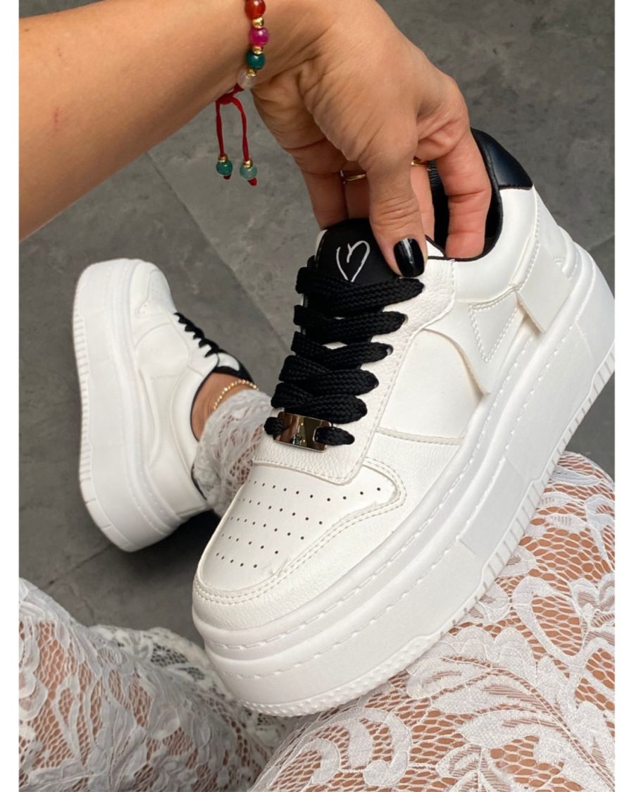 Tenis Blancos con detalles en negro de Moda Rosalía para Mujer | Tendencia Urbana