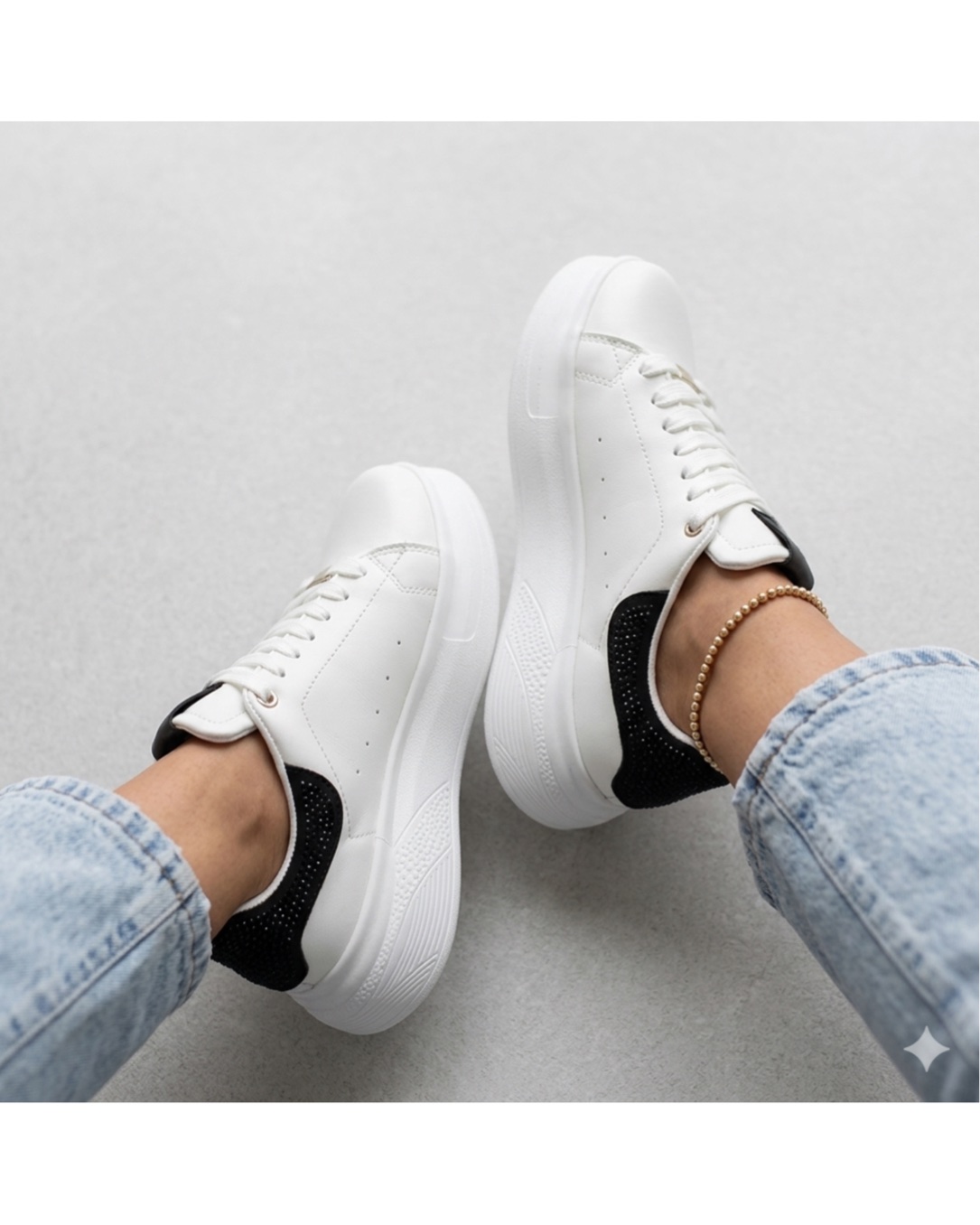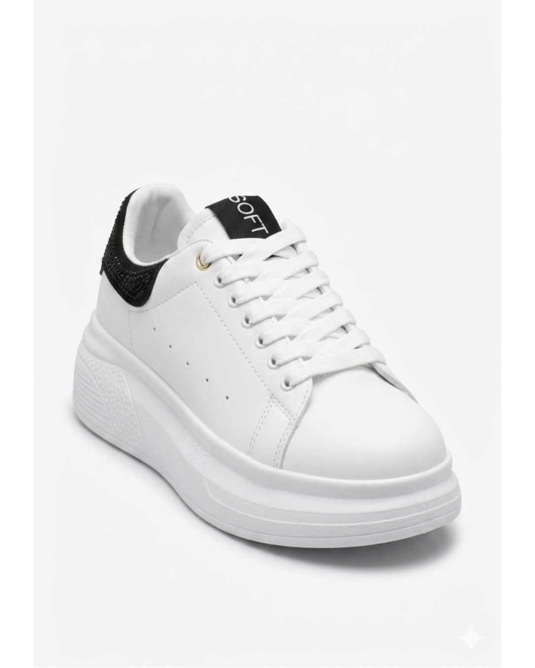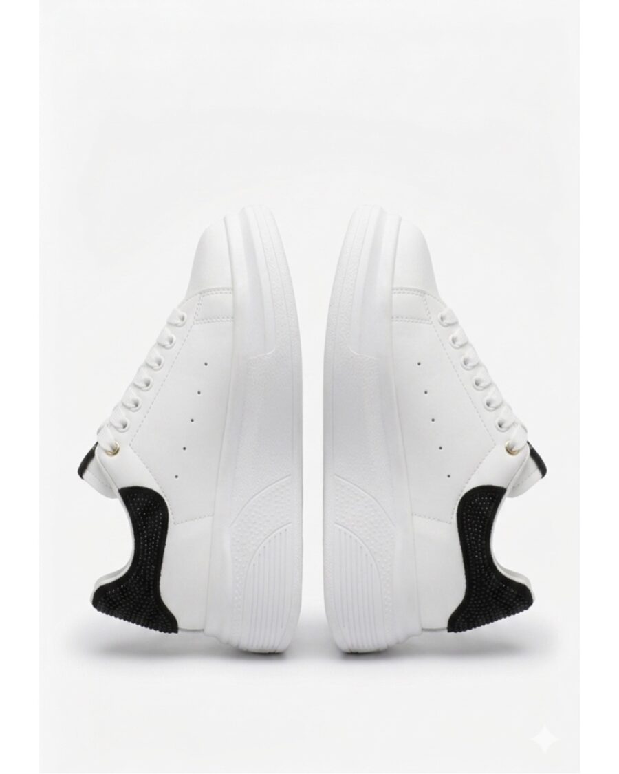 Tenis Mónaco de diseño minimalista en color blanco con detalle en contraste negro. Fabricadas con materiales de alta calidad, ofrecen comodidad, ligereza y estilo para el día a día. Su suela gruesa aporta altura y amortiguación, ideales para looks casuales modernos.