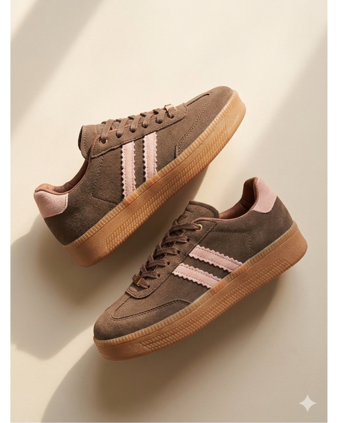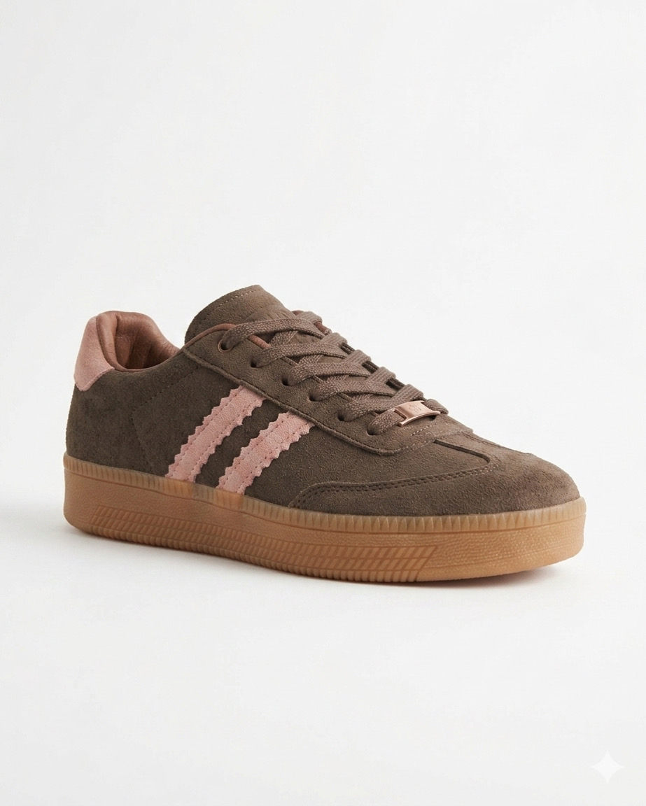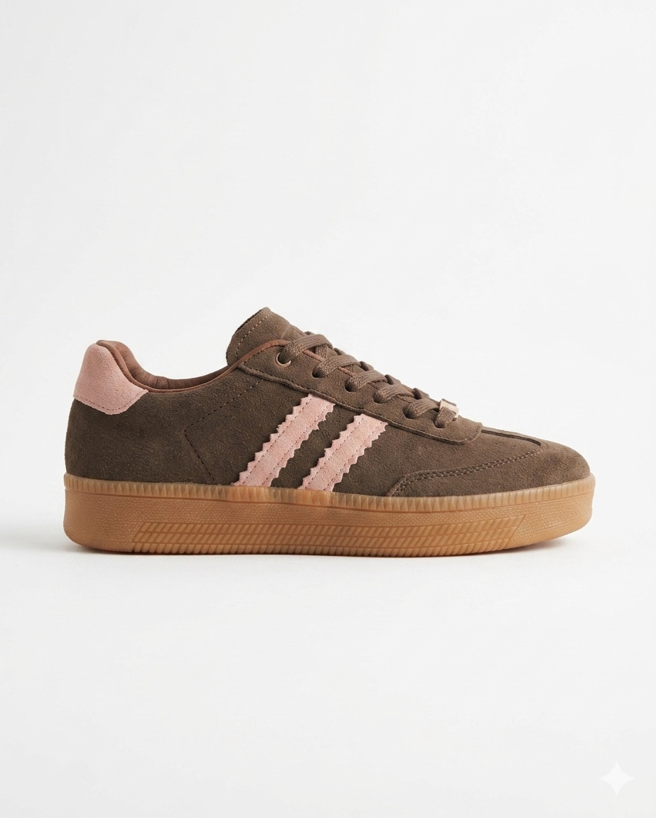 Descubre el equilibrio perfecto entre estilo casual y elegancia con estos tenis en tono café con detalles en rosado. Su diseño moderno y femenino los convierte en el complemento ideal para elevar cualquier outfit, desde looks relajados hasta combinaciones más sofisticadas.