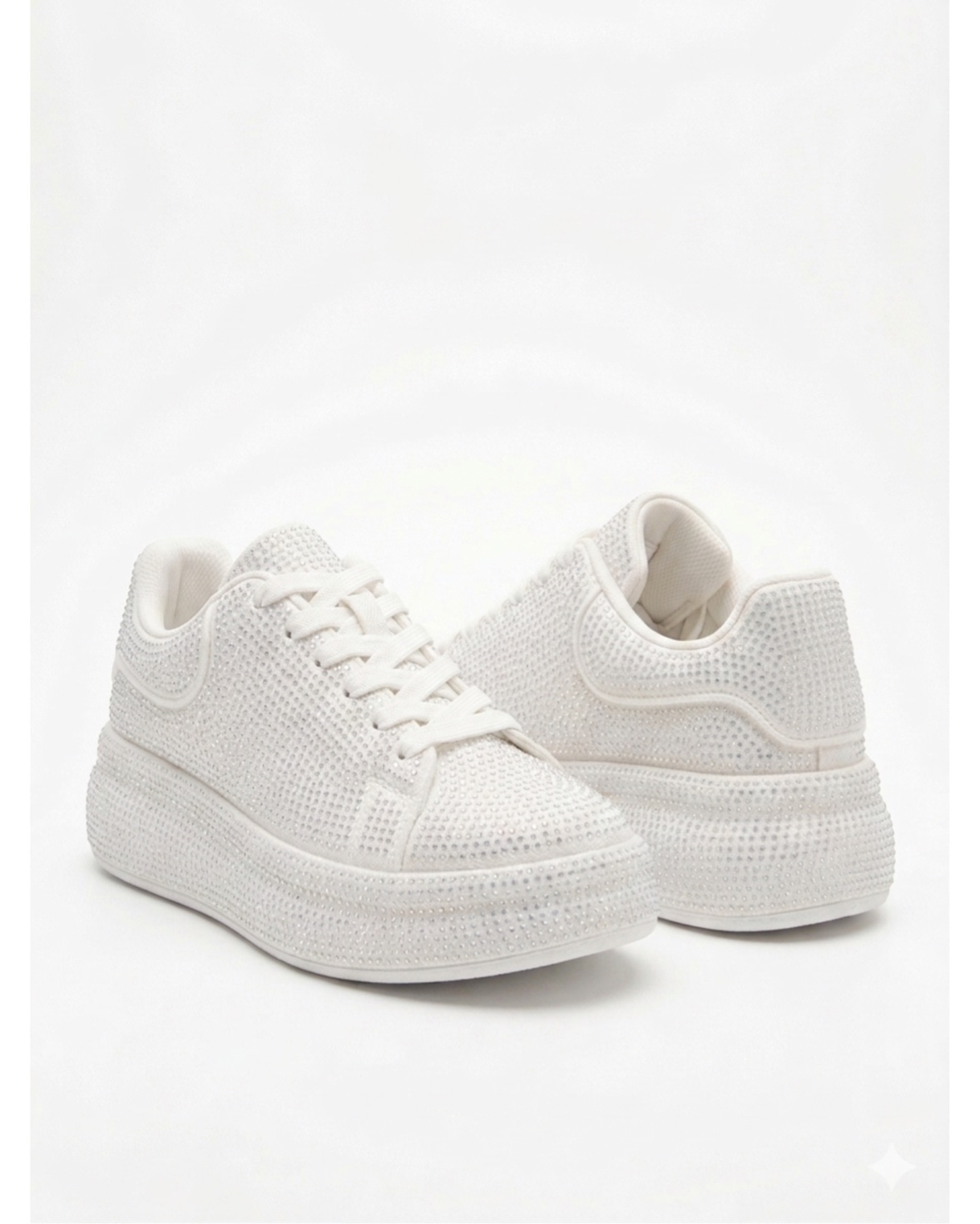 Eleva tu estilo con estos tenis de diseño sofisticado, pensados para mujeres que quieren destacar con elegancia y actitud. Su acabado con detalles brillantes aportan un toque glam✨ sin perder versatilidad, perfectos para combinar tanto con outfits casuales como looks más arreglados.